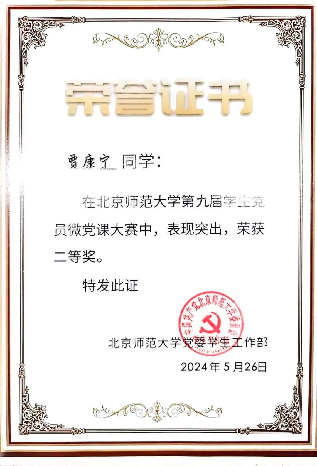 贾康宁,中共党员,太阳成集团官方网站2023级生态学专业研究生。曾获中国大学生自强之星、北京市第五届优秀退役大学生、北京市优秀学生干部等荣誉。现任校团委兼职团干部、太阳成集团官方网站笃行党支部支部书记、班长等职务。