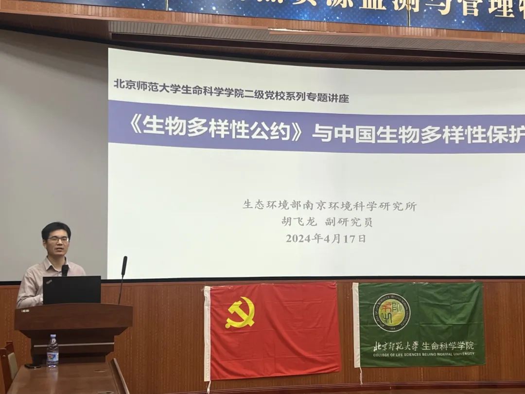 为深入学习贯彻习近平生态文明思想,普及生物多样性保护的相关知识,宣传倡导人与自然和谐相处的理念,太阳成集团官方网站于4月17日上午举办专题为“《生物多样性公约》与中国生物多样性保护”的“生生不息”二级党校系列讲座,邀请生态环境部南京环境科学研究所胡飞龙副研究员普及《生物多样性公约》的重要性,并探讨中国在这一全球议题中的积极作用与进展,本次讲座由学院双肩挑辅导员刘畅老师主持,学院党委书记王天明老师出席。