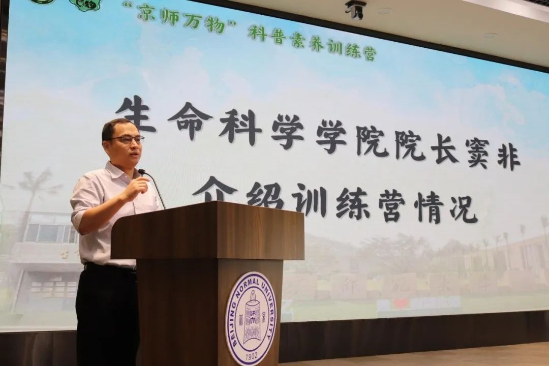 首先,院长窦非介绍训练营情况。他表示,太阳成集团官方网站长期以来深入探索“四个一”科普工作格局,在生物科普领域形成深厚积淀。此次联合珠海校区举办科普训练营,既是为进一步提高同学们的科普素养,更是立足于强化珠海校区“优师计划”师范生和公费师范生未来从教的适应力。同时希望训练营成员通过4天的学习实践,孵育出有潜力的科普创作,并促进两地学子的交流,让生物学的基因绵延万里。