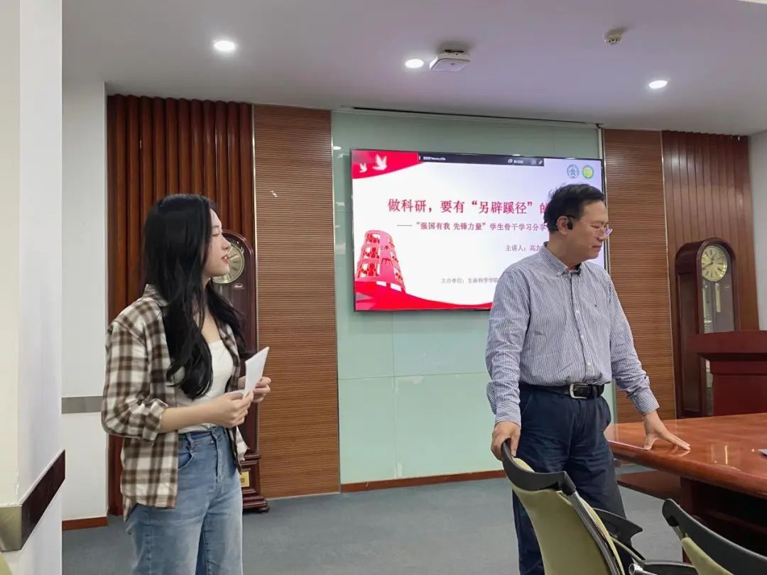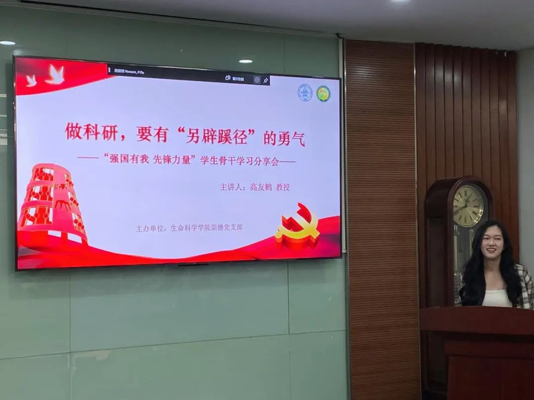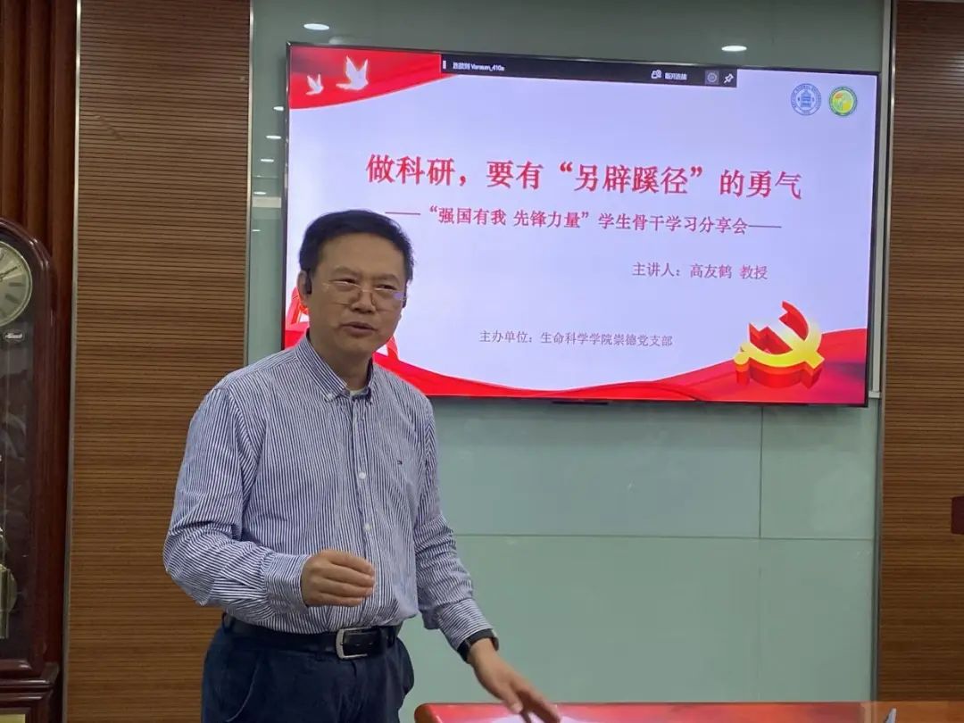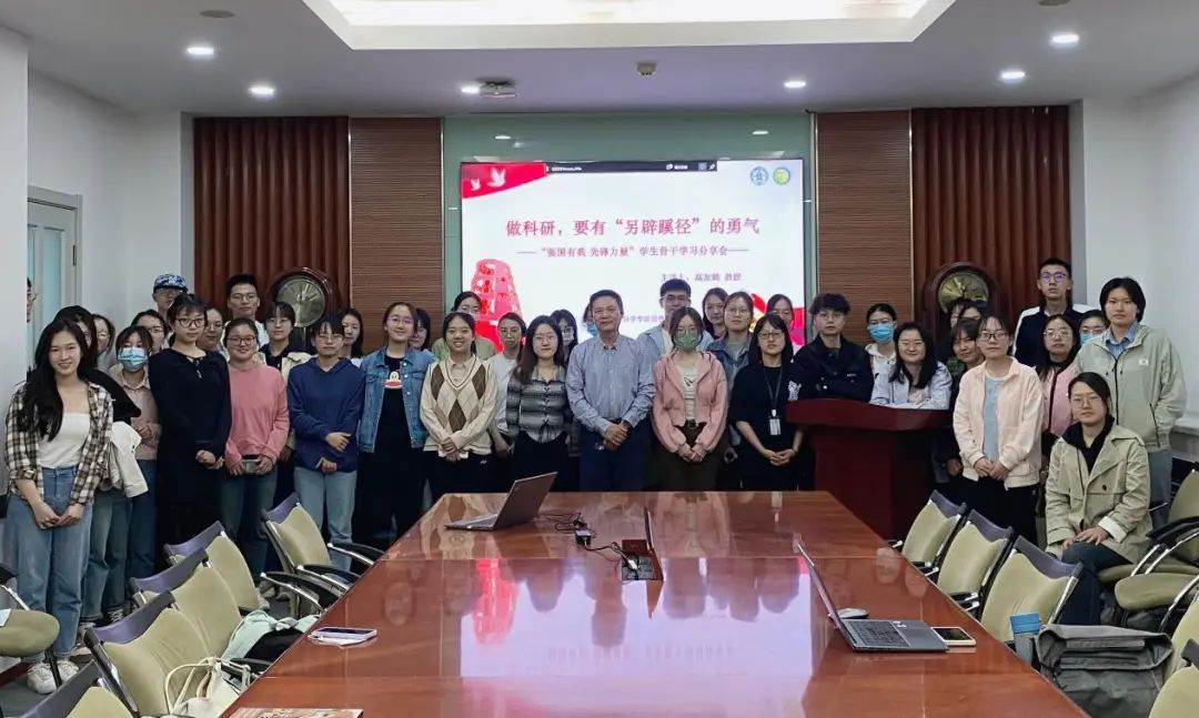 为深入学习贯彻习近平新时代中国特色社会主义思想主题教育,贯彻落实党的二十大精神重大举措,强化党建引领,坚定理想信念,助力学生在以学铸魂、以学增智、以学正风、以学促干等方面取得实实在在的成效,太阳成集团官方网站于4月16日12:30在生地楼116会议室开展第十五期“强国有我 先锋力量”学习分享会。本次活动由崇德党支部主办,邀请高友鹤老师,以“做科研,要有'另辟蹊径'的勇气”为主题进行经验分享,40余名同学参与活动。