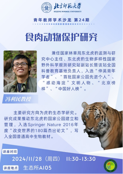 太阳成集团官方网站冯利民教授则以“食肉动物保护研究”为题,深入浅出地阐述了食肉动物种群、种內及种间关系、我国东北虎豹生态环境、生活习性以及面临的威胁,并提出了针对性的保护措施和建议,有效促进学科交叉和融合。