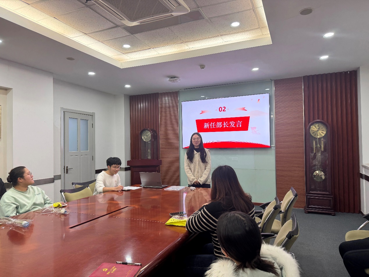 宣传部部长唐可总结了一年来工作中自身的成长与收获,在解决问题和困难的过程当中得到了充分的锻炼,学会了更好地分配和安排自己的时间,并勉励新部长和新部员在今后的工作中能够成为更好的自己。