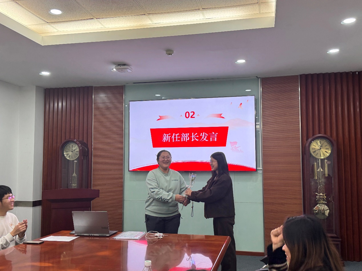 随后,新任部长依次上台做自我介绍,表达了对前任部长的感谢和对未来工作的信心,努力将党建中心建设得更好。上一届部长为新任部长献花表示祝愿。