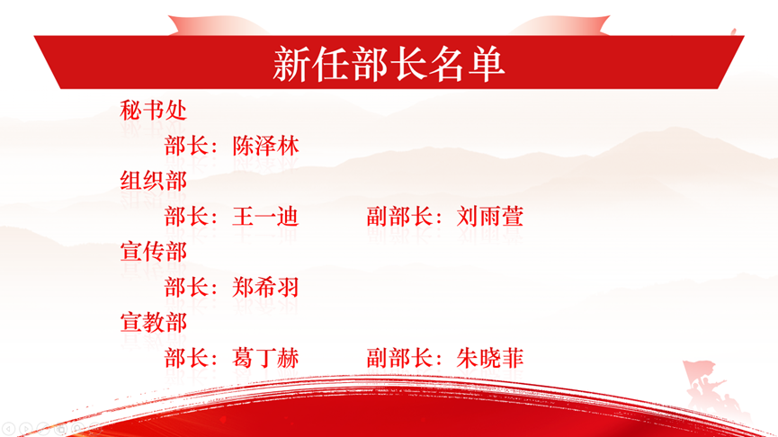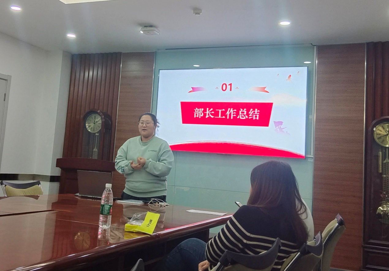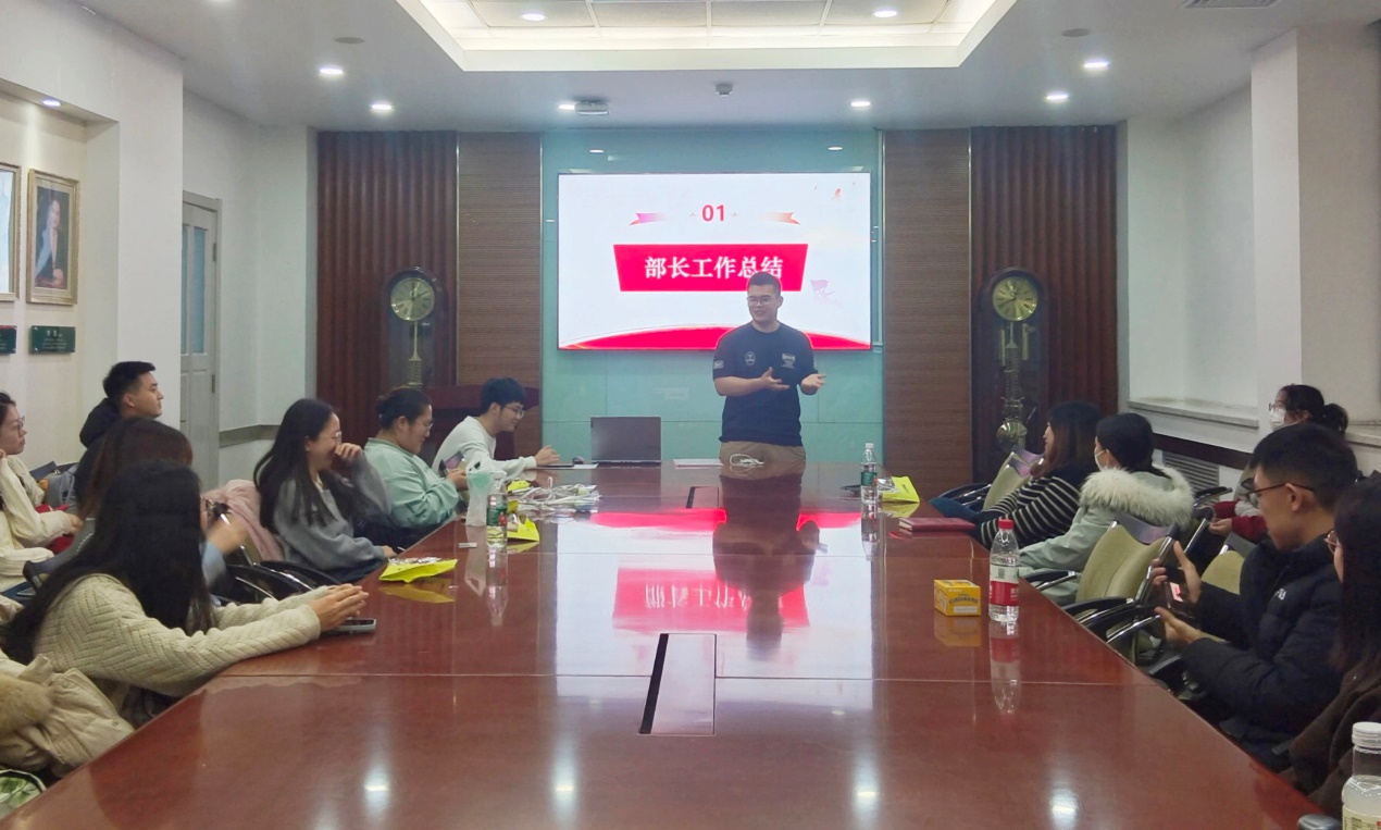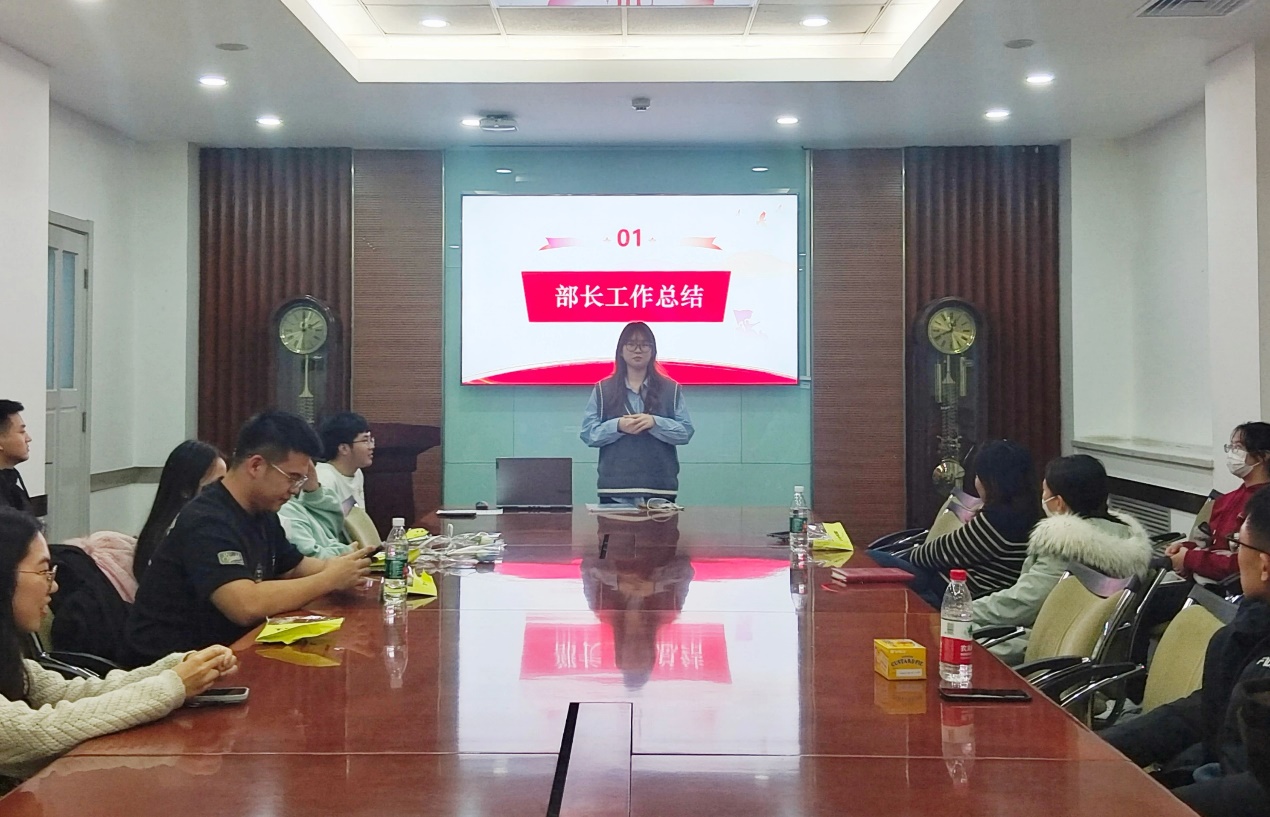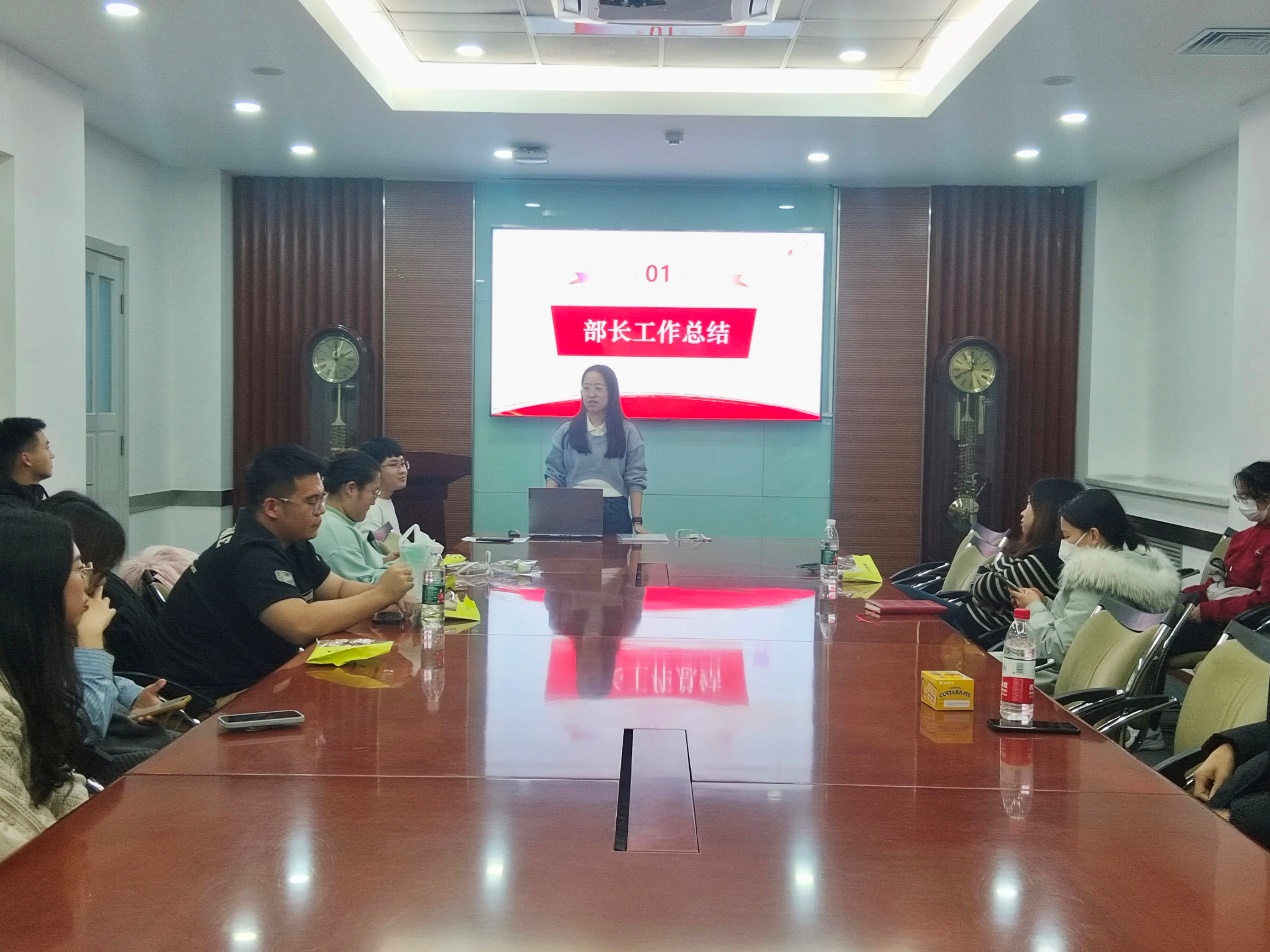 组织部部长刘长泽对一年的工作进行简短回顾,感谢了每一位部员在关键时刻的挺身而出和坚持不懈,也感谢了刘畅老师和党瑜老师在工作对接中的悉心指导,完成了自我的挑战与成长。