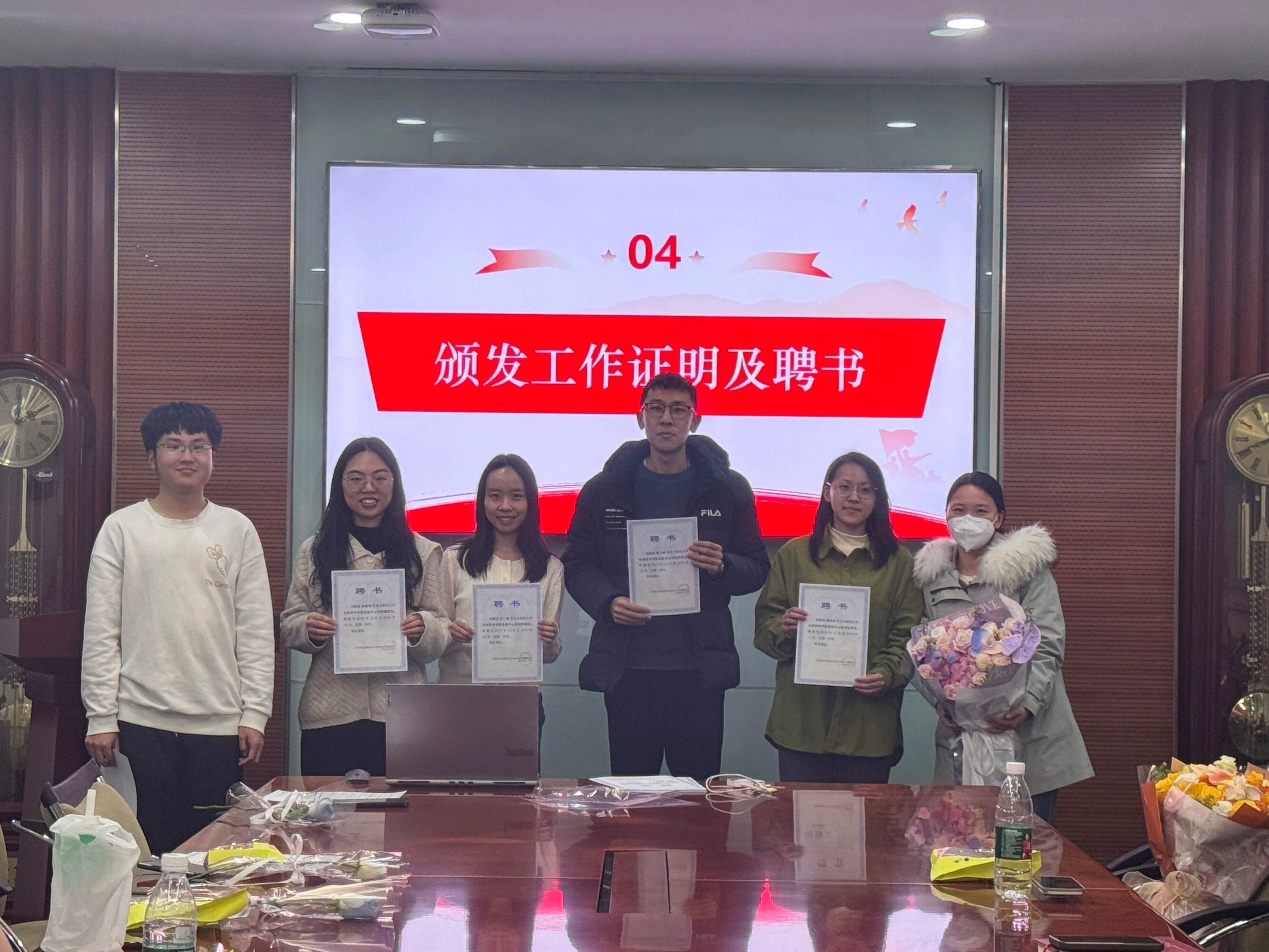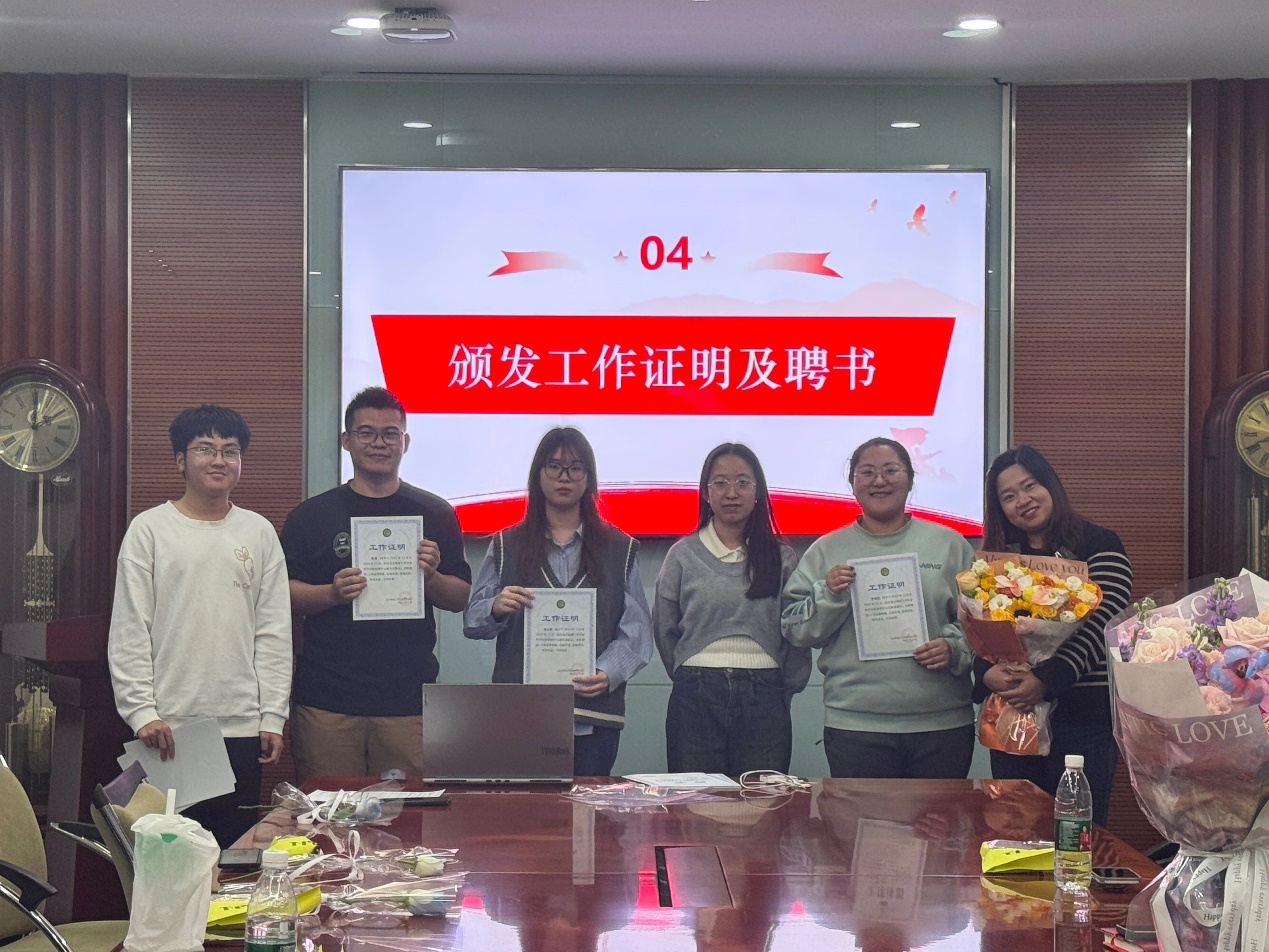 最后,由刘畅老师为上一任部长颁发工作证明,党瑜老师为新任部长颁发聘书。