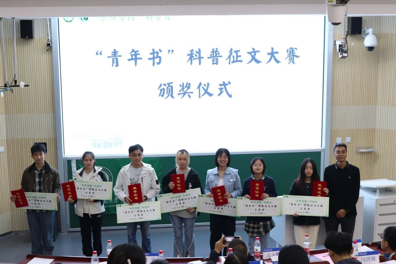 此次“青年书”科普征文大赛,涌现出许许多多的优秀作品,张兴同学的《纳米科技:医学进步的推动者》介绍了前沿纳米技术在医学方面的应用,陈静阳同学的《<黑神话:悟空>虎先锋的面目竟是它》从热门游戏讲到猫科动物的相似特点……参赛选手用通俗的语言带来了精彩的科学普及。中国科普研究所副研究员王大鹏老师为获得一、二、三等奖的作者颁发获奖证书和科普基金。