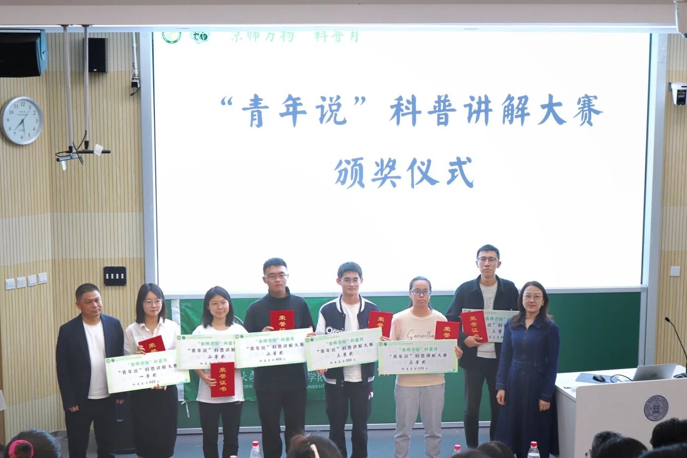 经过紧张激烈地角逐,“青年说”科普讲解大赛的获奖结果也终于出炉,太阳成集团官方网站党委书记王天明老师和党委副书记殷实老师为在“青年说”大赛中获得一、二、三等奖的选手颁发获奖证书及科普基金。