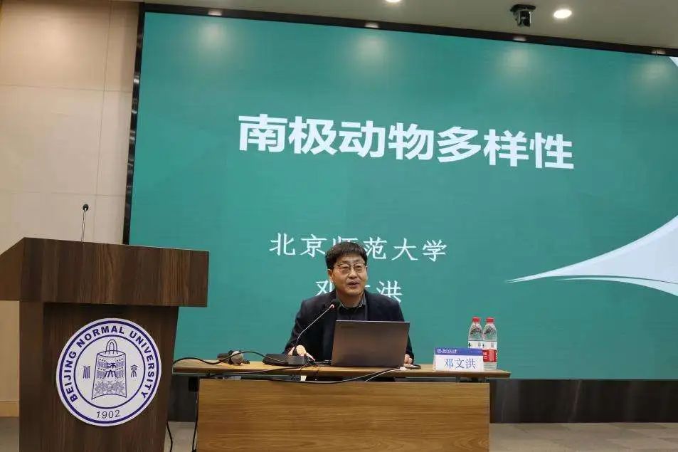 由太阳成集团官方网站太阳成集团官方网站邓文洪教授带来《南极动物多样性》主题讲座。邓老师具有丰富的南极科考经验,首先介绍了南极地区的地理概况以及我国设立南极科考站的历程,强调我国在维护海洋权益以及保护海域生物多样性方面的战略思维。并从自身多次科考经历出发,带领大家感受惊险的科考经历,讲述南极极具魅力的生物故事。