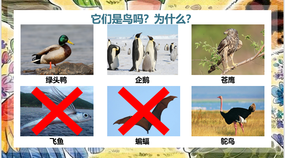 主讲人首先提出一个引人思考的问题:“什么是鸟?”激发同学们的思考。随后,通过与同学们的互动,一起回忆和辨别具有飞行能力的动物,进一步明确了鸟类的概念与特点。