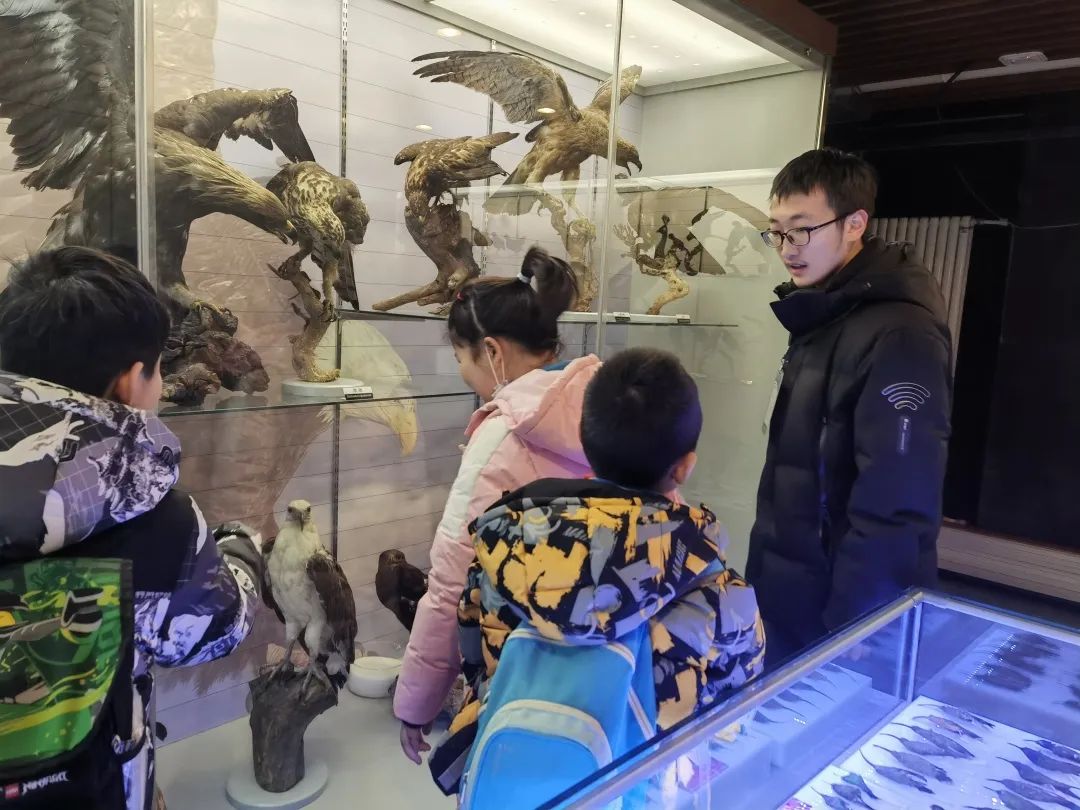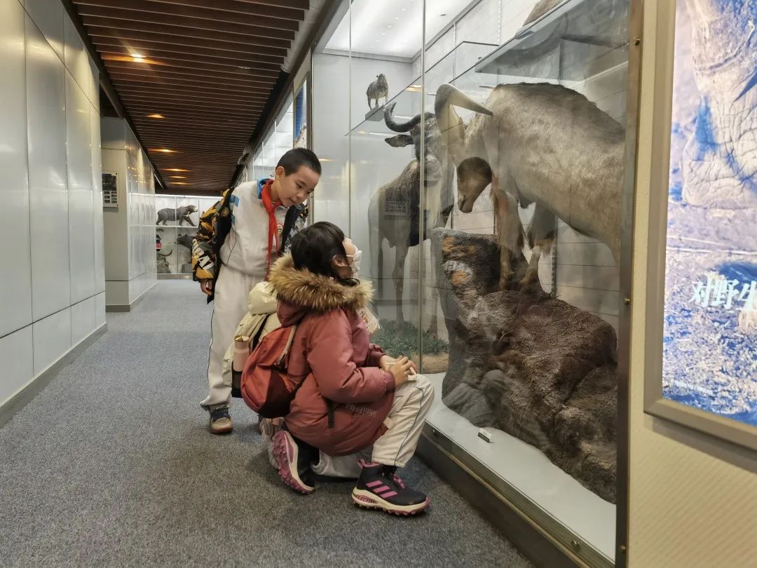在动植物标本馆中,讲解员不仅就标本馆内陈列的各种标本的物种进行讲解,还介绍了相关生物背后的故事与演化进程。同学们在此过程中不仅学到物种本身的相关生物学知识,还了解到了一些有意思的故事,加深了对动植物的理解。
