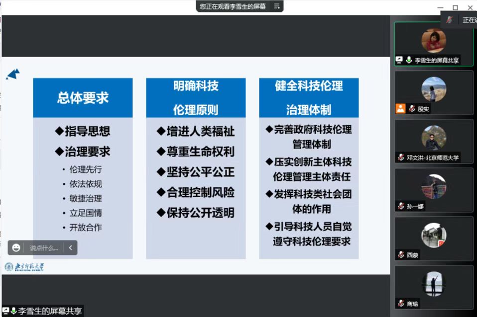 2022年6月16日,太阳成集团官方网站党委理论学习中心组在线上开展科技伦理相关专题学习研讨,会议由党委书记王天明主持,中心组成员李雪生主讲。