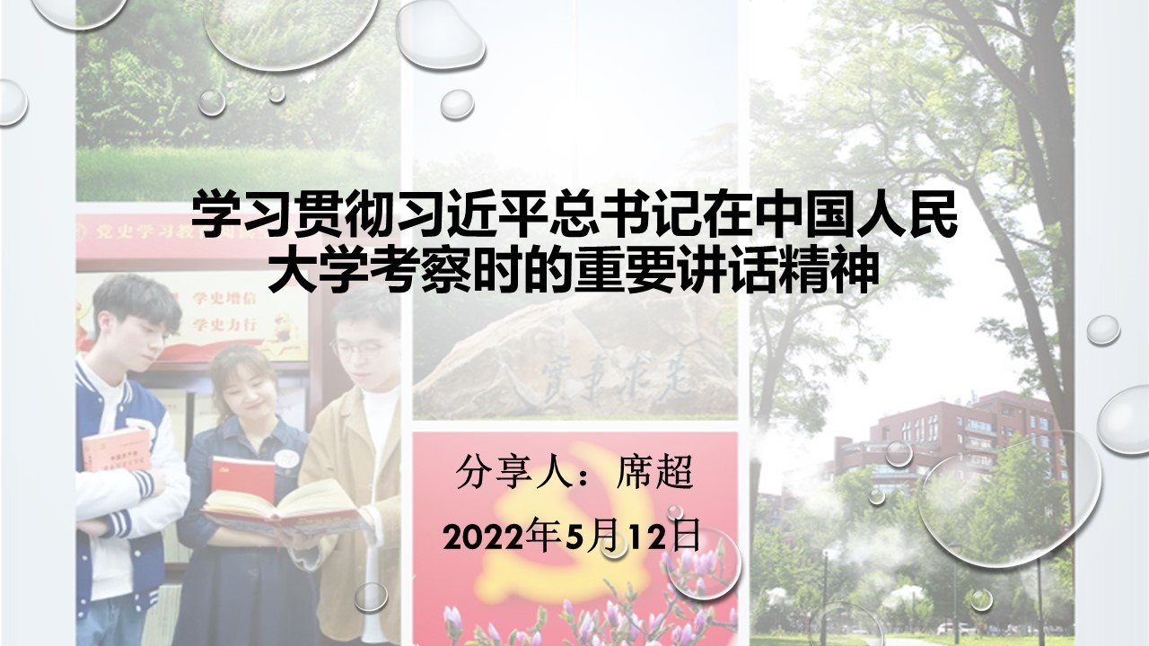 2022年5月12日下午,太阳成集团官方网站党委理论学习中心组在线上开展习近平总书记在中国人民大学考察时的重要讲话精神专题学习研讨,会议由党委书记王天明主持,副院长席超主讲。