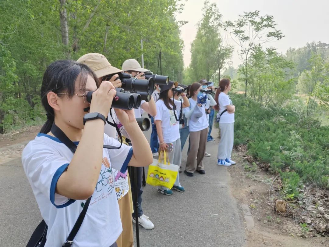 2024年5月9日下午,在密云一小、密云区园林绿化局和北庄镇的支持与帮助下,宣讲团志愿者带领150名密云一小的四年级学生一起去北京市密云区搜狐农场进行了观鸟实践教学课程。沿清水河溯流而上,一直到“爱鸟之家”北侧树林,志愿者们带领同学们走进自然、亲近自然,亲自体验观鸟的过程,感受密云丰富的生态资源。一路上,同学们通过单筒望远镜和摄像机对鸟类进行拍摄,观察不同鸟类的形态行为特征并各自交流分享心得,乐趣多多、收获多多。
