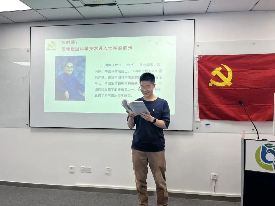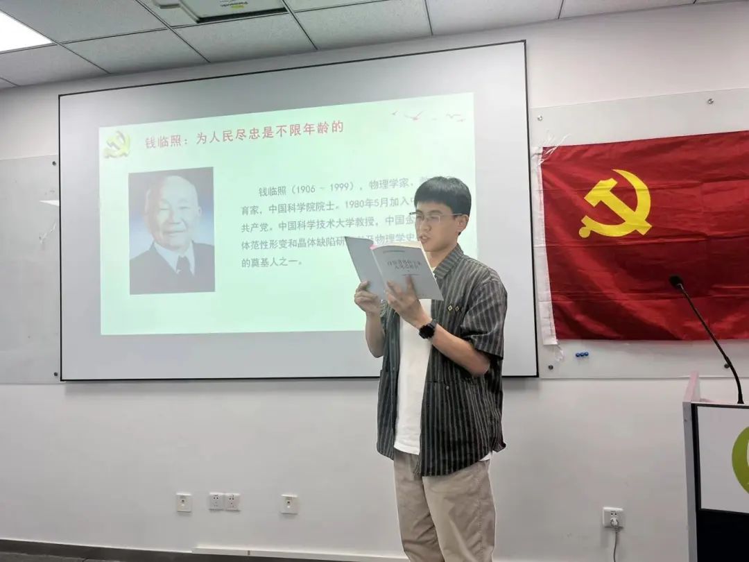 活动第一项,由支部书记带领各位党员同志共读《百位著名科学家入党志愿书》,通过他们的入党志愿书等珍贵档案资料,领会中科院老一辈科学家践行入党誓词、发挥党员先锋模范作用,学习他们忠党爱国、献身科学、艰苦奋斗、攻坚克难的伟大情怀和感人事迹。结合党纪学习,引导党员时刻不忘自己的“第一身份”,发挥先锋模范作用,始终自觉按党规党纪的具体要求办,弘扬和传承科学家精神,为加快科技自立自强、建设世界科技强国汇聚强大力量!