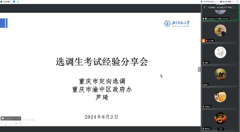 2022级博士党支部立足党建业务相融合,服务学科建设,服务社会需求,服务国家战略,2022级博士党支部搭建同顶尖学者、优秀学生交流学习平台,探索党建引领科研与就业的创新路径,举办“薪火相传 生生不息”系列讲座。为助力同学们实现更加充分的高质量就业,太阳成集团官方网站2022级博士党支部于2024年8月2日举办“薪火相传 生生不息”之选调经验分享会,邀请在今年选调生考试中取得卓越成绩的优秀毕业生唐志珍和芦琦,亲述选调生考试的最新考情、职位选择、备考方法等方面的宝贵经验,讲座面向学院全体学生。