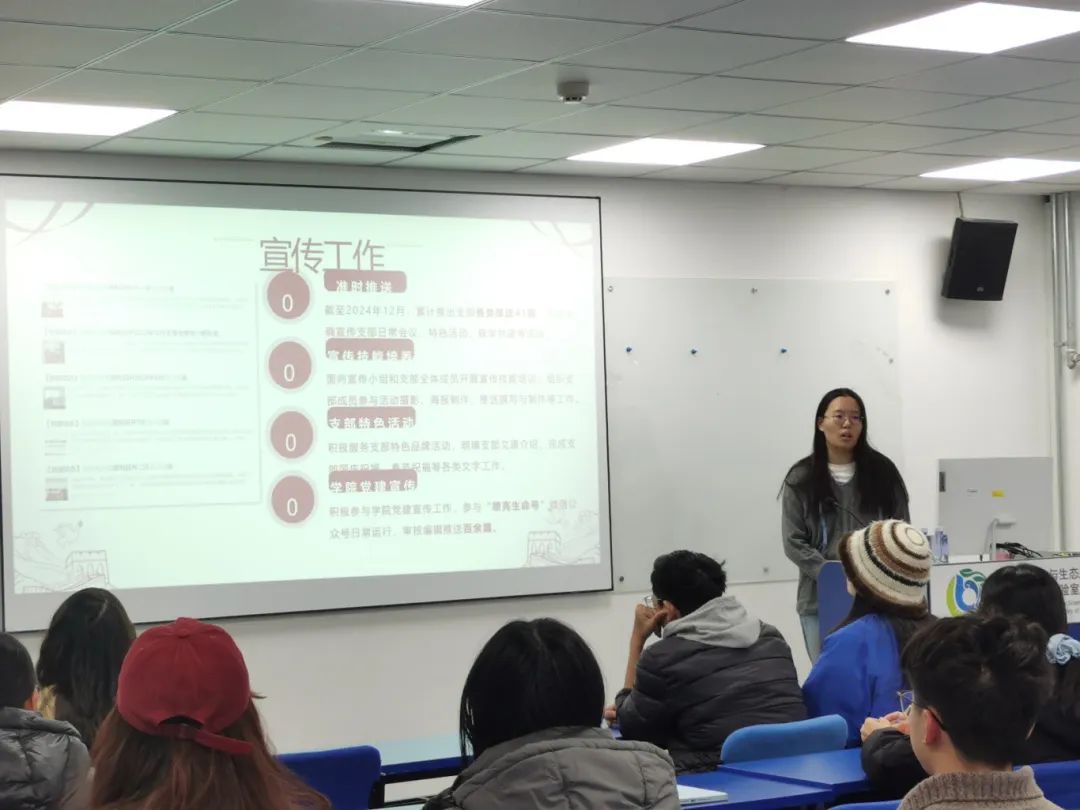 会议第二项,由现任支部委员会做2024年致知党支部工作报告。报告总结了上一届支委在党支部组织管理方面取得的成果,以及各类实践活动的开展情况,并反思了工作过程中存在的不足之处。