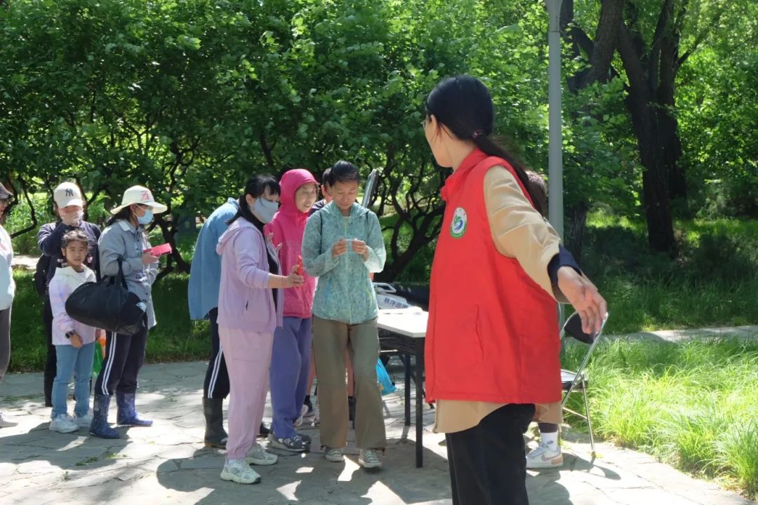 上午8:30,志愿者们陆续抵达海淀公园御稻流香景区。海淀公园的活动负责老师带领志愿者们熟悉各项工作流程、交代注意事项后,志愿者们换上红马甲,分为五支队伍,分别协助工作人员开展外场秩序维持、登记排号指引、鞋套和雨鞋发放、插秧现场秩序维持、秧苗管理的工作。