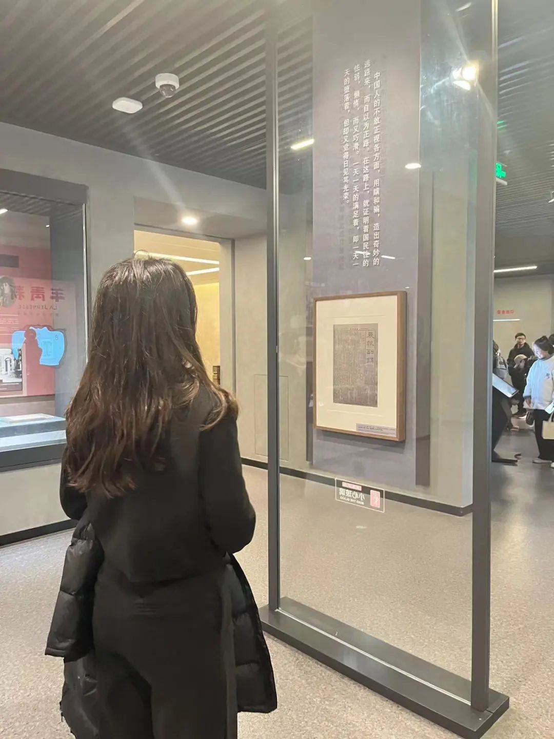 走进了那条不起眼的小胡同,跨入鲁迅博物馆的大门,鲁迅先生的雕塑就座落在那里,深邃的眼神目视着远方,敬佩之情瞬间涌满我的全身。多少次我们为了考试翻开书卷,学习《呐喊》与《彷徨》,不曾走进,而来到鲁迅博物馆时,发现书中的字字句句都是鲁迅先生在当下的历史环境和背景下呐喊出的真情实感。展览中看到很喜欢的一句话,生命是我自己的东西,所以我不妨大步走去,向着我自以为可以走去的路;即使前面是深渊,荆棘,狭谷,火坑,都由我自己负责。鲁迅先生虽逝,但是他的精神、气节会激励着一代又一代的青年人。