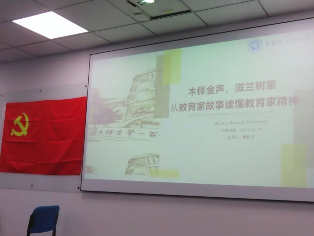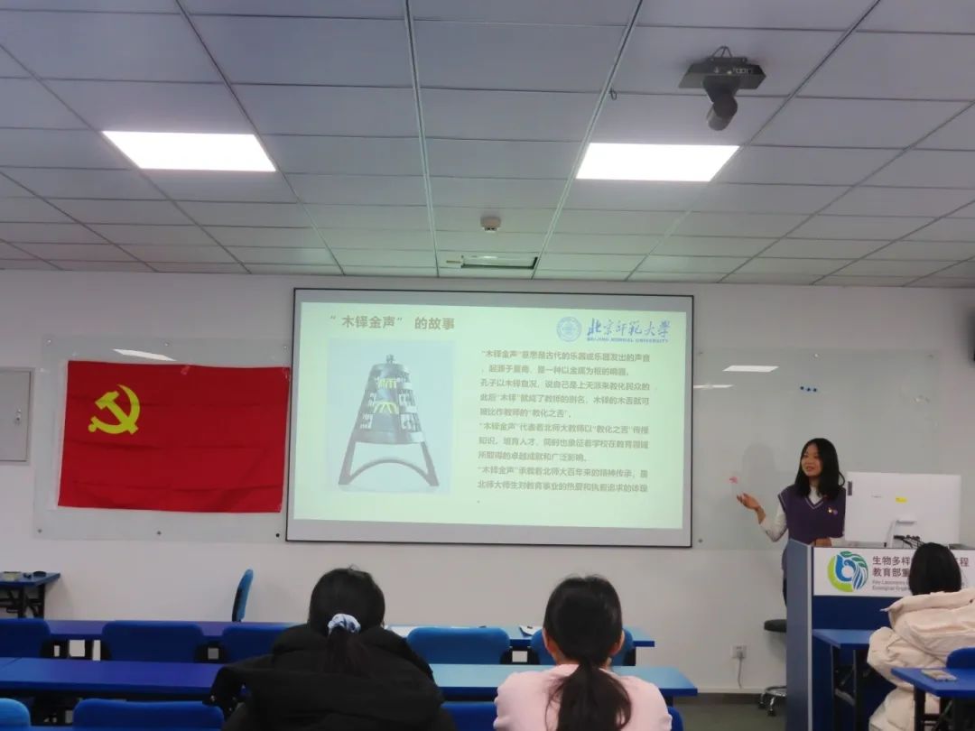 为重温校史校训,共叙教育故事,笃行党支部联合马克思主义学院求索学社的宣讲课程于2024年12月21日,在生态所a105开展了主题党日活动。本次活动以讲座形式开展,课程主题为《木铎金声,滋兰树蕙——从教育家故事读懂教育家精神》,主讲人为马克思主义学院求索学社宣讲团成员周佳宁。