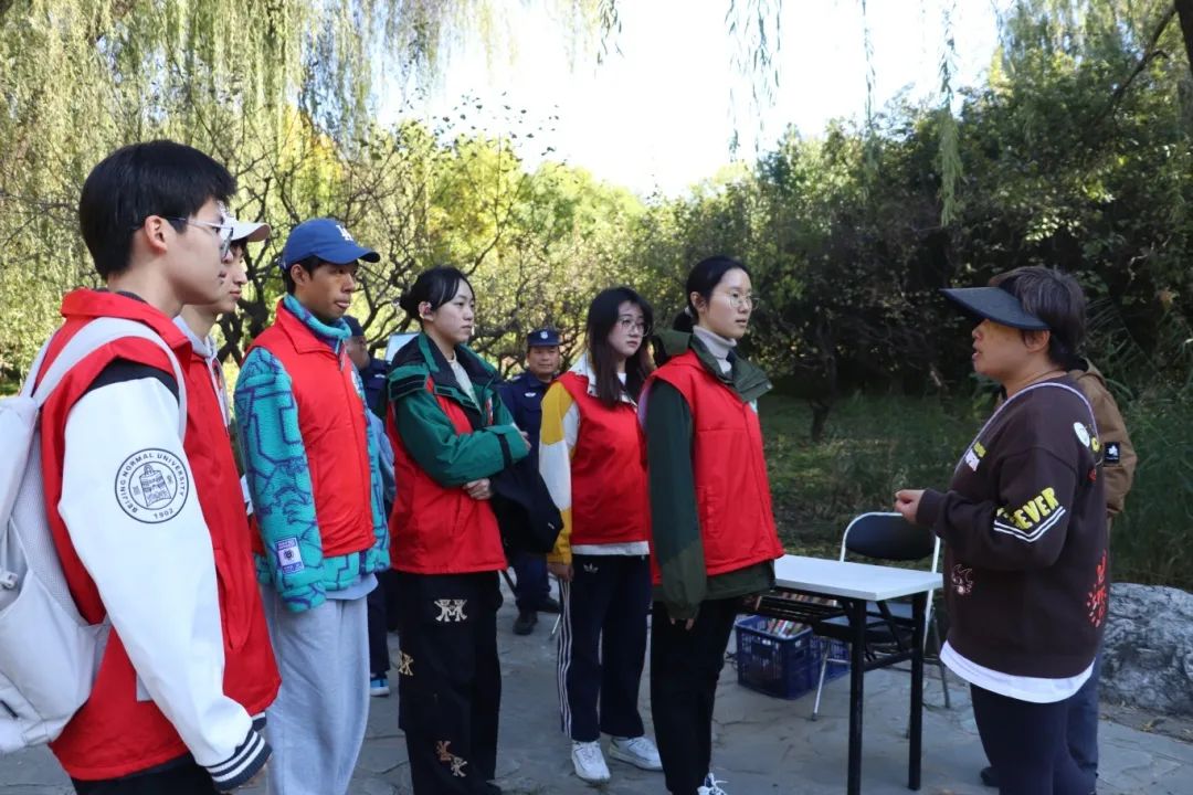 下午14:00,志愿者们陆续抵达海淀公园御稻流香景区。海淀公园的活动负责老师带领志愿者们熟悉各项工作流程、交代注意事项后,志愿者们换上红马甲,分别协助工作人员开展外场秩序维持、回答游客咨询、登记排号指引、物资发放、收割现场秩序维持等工作。