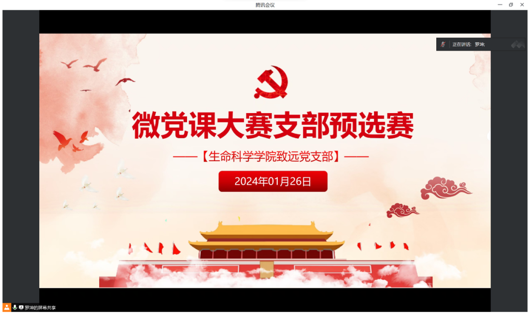 为全面学习贯彻习近平新时代中国特色社会主义思想和党的二十大精神,学习贯彻学校第十四次党代会精神,推进党史学习教育常态化、长效化,加强对学生党员的教育引导,提高理论学习实效,鼓励学生党员坚持党史学习与思想体悟,助力学生高质量发展,致远党支部于2024年1月26日19:00线上开展“见微知著”微党课大赛支部预选赛。黄紫嘉、刘欣欣、尚钰静、刘雨萱四位选手结合自己的所见所想,为大家带来了精彩纷呈的微党课。