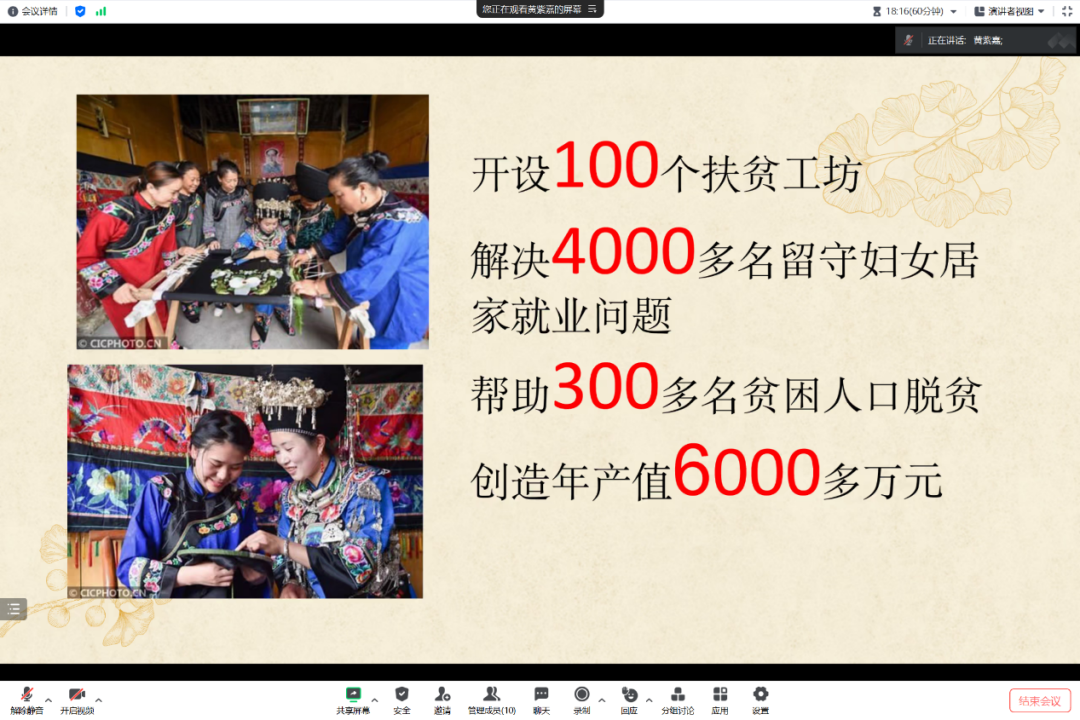 首先,黄紫嘉同志以“传承中华优秀传统文化,筑牢中华民族共同体意识”为主题,开展了题为《以指尖记忆,传文化,促经济》的微党课,向大家介绍了非遗——松桃苗绣的传承和发展,以及在新时代苗绣的传承如何与乡村振兴结合,为文化传承和经济发展相结合的实践提供重要的指导。