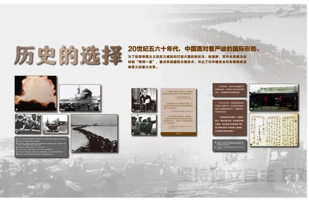 20世纪50年代中期,面对国际上严峻的核讹诈形势和激烈的军备竞赛趋势,为尽快增强国防实力,保卫和平,促进我国科技事业和国防工业的发展,党中央决定优先发展以导弹、原子弹为代表的尖端技术。以毛泽东为核心的党中央领导集体作出了发展“两弹一星”、突破国防尖端技术的战略决策。