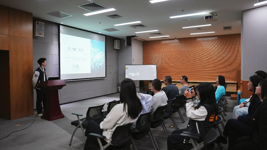 立身党支部组织支部成员,制作鸟类与城市生态健康科普课程,并由禹英渤同志向写字楼员工开展宣讲。宣讲从鸟类鸣唱引入,阐述鸟类和人类健康、生态系统健康的关联,普及城市中影响鸟类生存的因素,并提出生物多样性保护建议,取得积极反响。