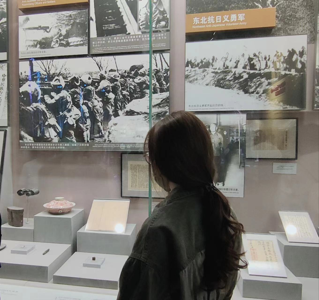 时值五四青年节,我随支部一起来到中国人民抗日战争纪念馆参观。刚一入馆,最大的感受是场馆内的光线不甚明亮,就好像彼时弥漫着硝烟的华夏大地,形势晦暗不明。若要身体行动起来,最要紧的是心灵的觉醒。于是乎,在危机四伏,剑拔弩张的时候,有志之士们纷纷挺身而出,他们奔走呼号,为的是能够唤醒国民的危机意识与斗志。我在展品中看到中华民族解放先锋队在北平师范大学成立时,制作的《我们的政治主张和基本态度》宣传品,那是学生们意识觉醒,爱国之心激荡的象征之一。当这些承载着国家未来的青年们站出来时,国家的希望之火正在此刻熊熊燃烧。