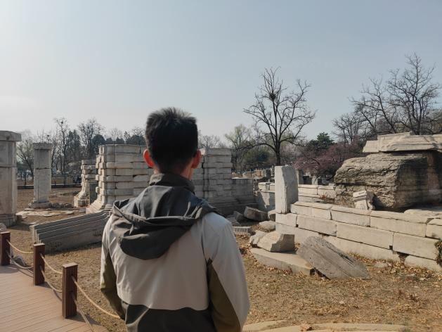 圆明园的残缺与春日的景色相互融合,让人不禁惋惜圆明园旧日的辉煌与精美,在巨大的落差感中,感受到如今和平时代的来之不易,并意识到当代青年应当肩负起的担当与使命,无论时代如何发展,我们都将铭记曾经的历史,传承红色基因,将自身的前途命运与国家和民族的前途命运紧紧的联系在一起,在实现中华民族伟大复兴的征程上奋发图强,笃行致远。