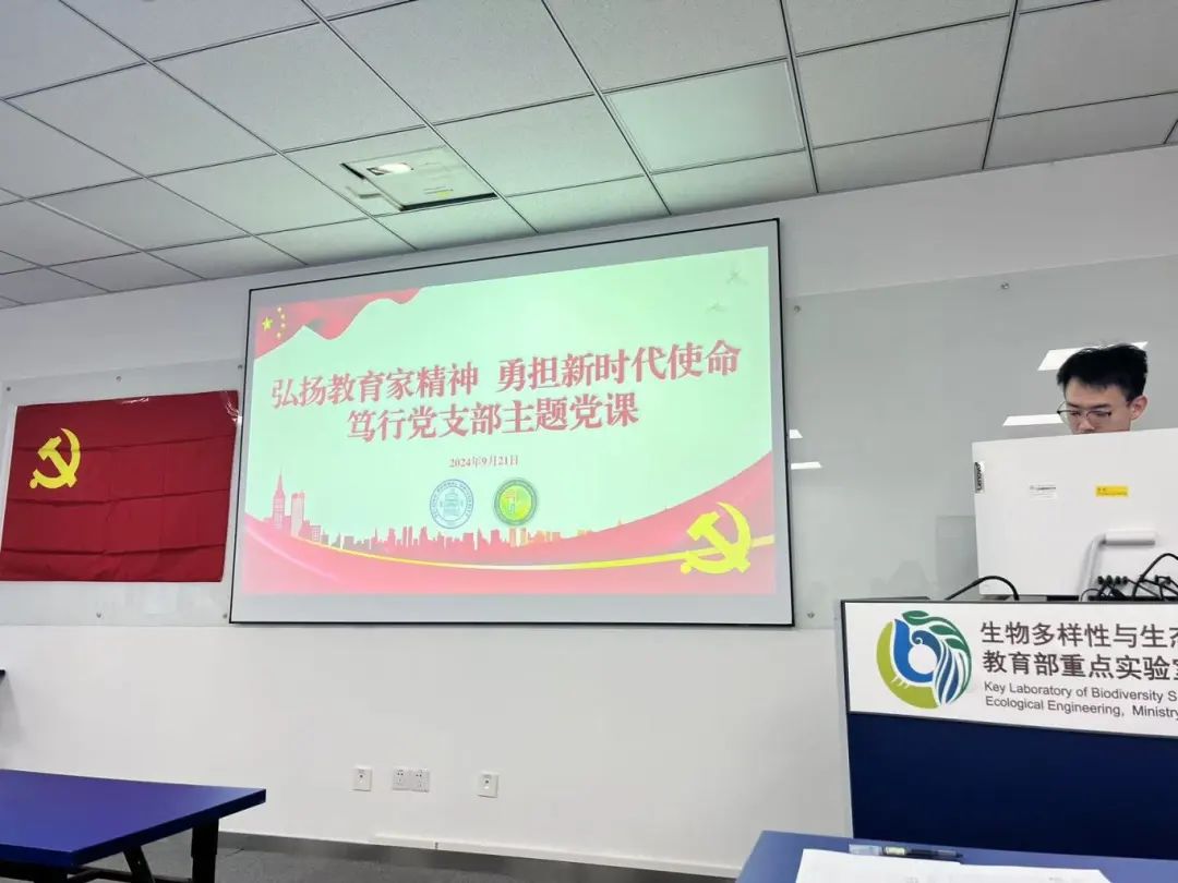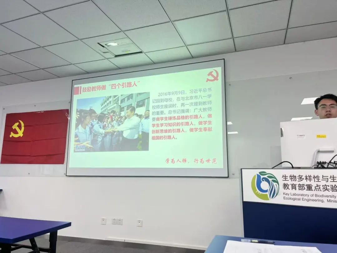 会议第六项,支部书记讲党课。主题为《弘扬教育家精神,勇担新时代使命》,本次党课旨在积极学习教师教书育人的各项标准,向有理想信念、有道德情操、有扎实学识、有仁爱之心的“四有”好老师靠拢。