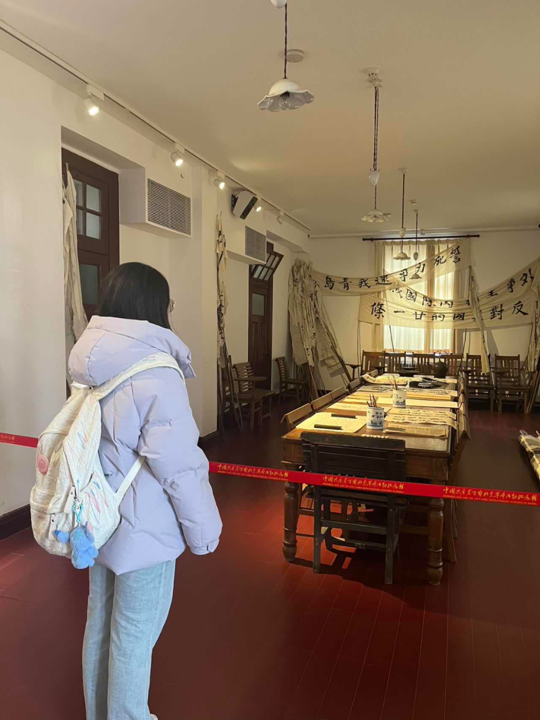 王丽博:北大红楼这座见证了新文化运动风云的建筑,以其独特的姿态诉说着一个时代的激荡与觉醒。阳光透过拱形的窗棂洒在木质地板上,光影交错间,我仿佛看见了陈独秀先生伏案疾书的身影,听见了李大钊先生慷慨激昂的演讲。那些泛黄的书页、斑驳的桌椅,都在诉说着一个民族觉醒的故事。站在二楼的走廊上,望着天井中婆娑的树影,我深深感受到:北大红楼不仅是一座建筑,更是一个民族的精神图腾。它提醒着我们,思想的觉醒永远是一个民族最宝贵的财富。在这里,我触摸到了历史的温度,感受到了先贤们为民族复兴而奋斗的热血与激情。离开时,我再次回望这座红色的建筑。它依然静静地矗立在那里,像一位智者,注视着时代的变迁,见证着中华民族在觉醒的道路上不断前行。