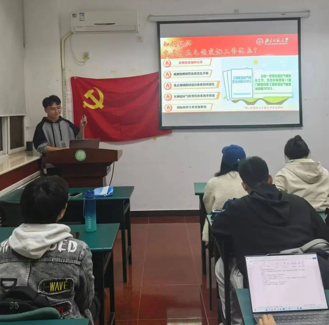 郭泽旭同学还着重讲解了如何理解完善适应气候变化工作体系。为了应对日益加剧的全球变暖,我国的政策体系加快完善、观测预测预警体系优化升级、区域适应气候变化体系初步搭建、我国适应气候变化的国际领导力和影响力提升。作为生科院的学生我一直很关注气候问题,看到我国对此展现出的大国担当我感到了由衷的自豪,并决心努力学习专业知识,未来为我国生态文明建设做出一份贡献。