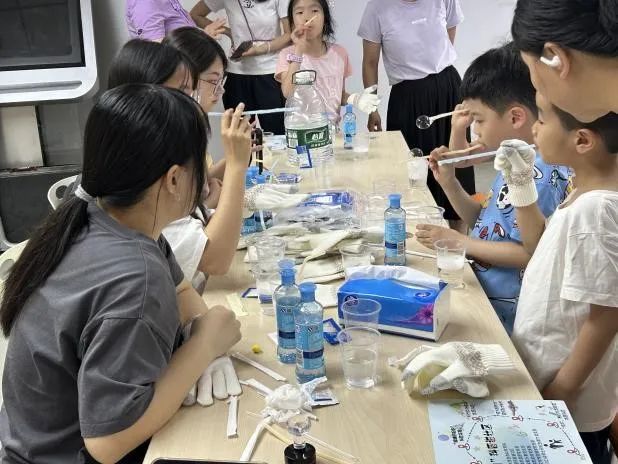 乐育党支部带来了“弹跳的泡泡”科普实验活动。通过解释实验现象,讲解实验原理,辅助小朋友们亲自动手完成实验等环节传递科学知识,同时引导小朋友们思考背后的科学逻辑,锻炼他们的科学思维,激发他们对科学探索的热忱。