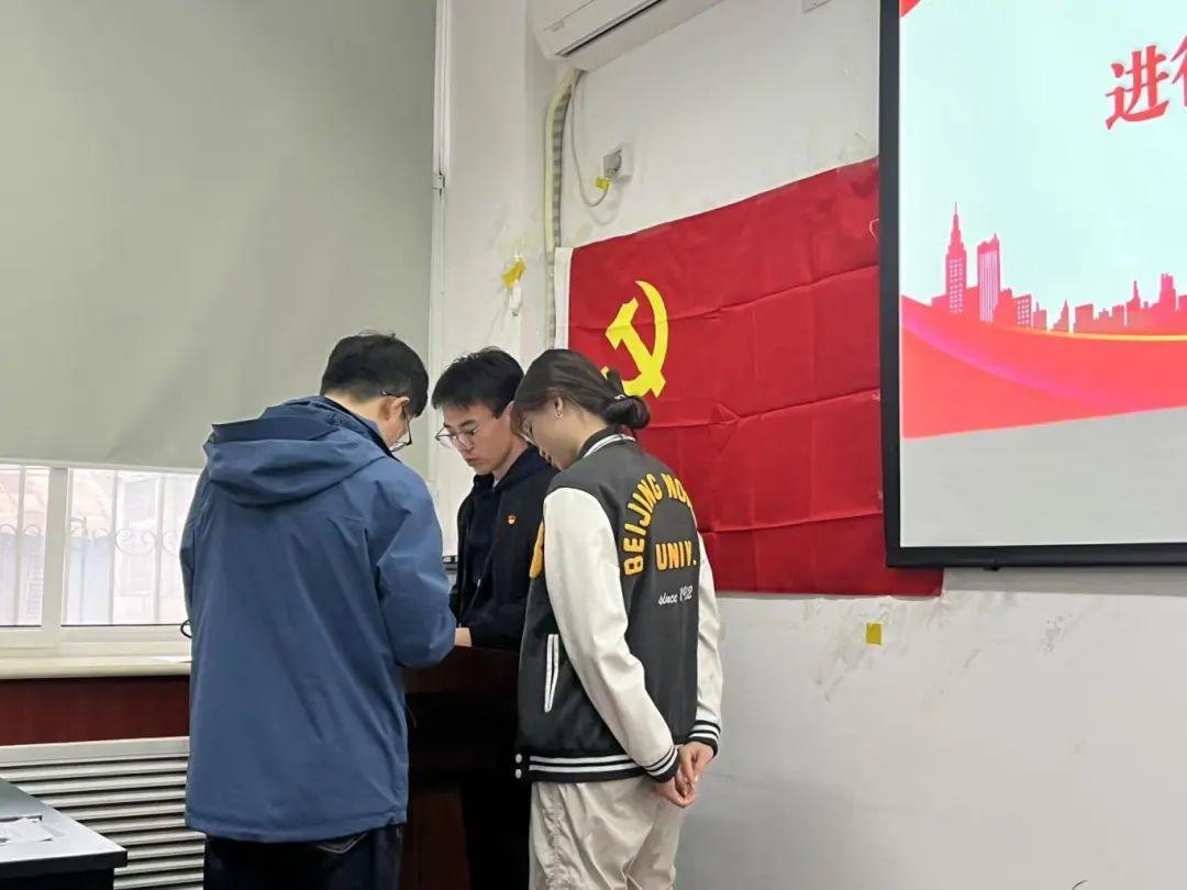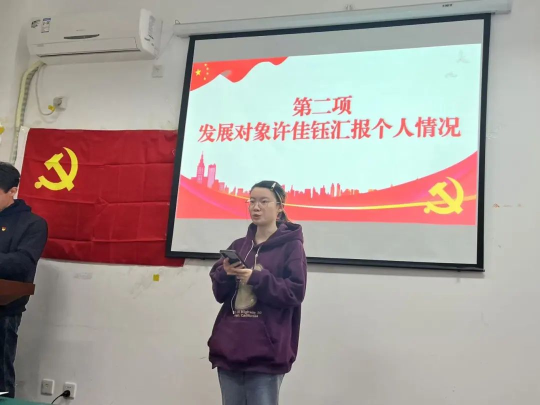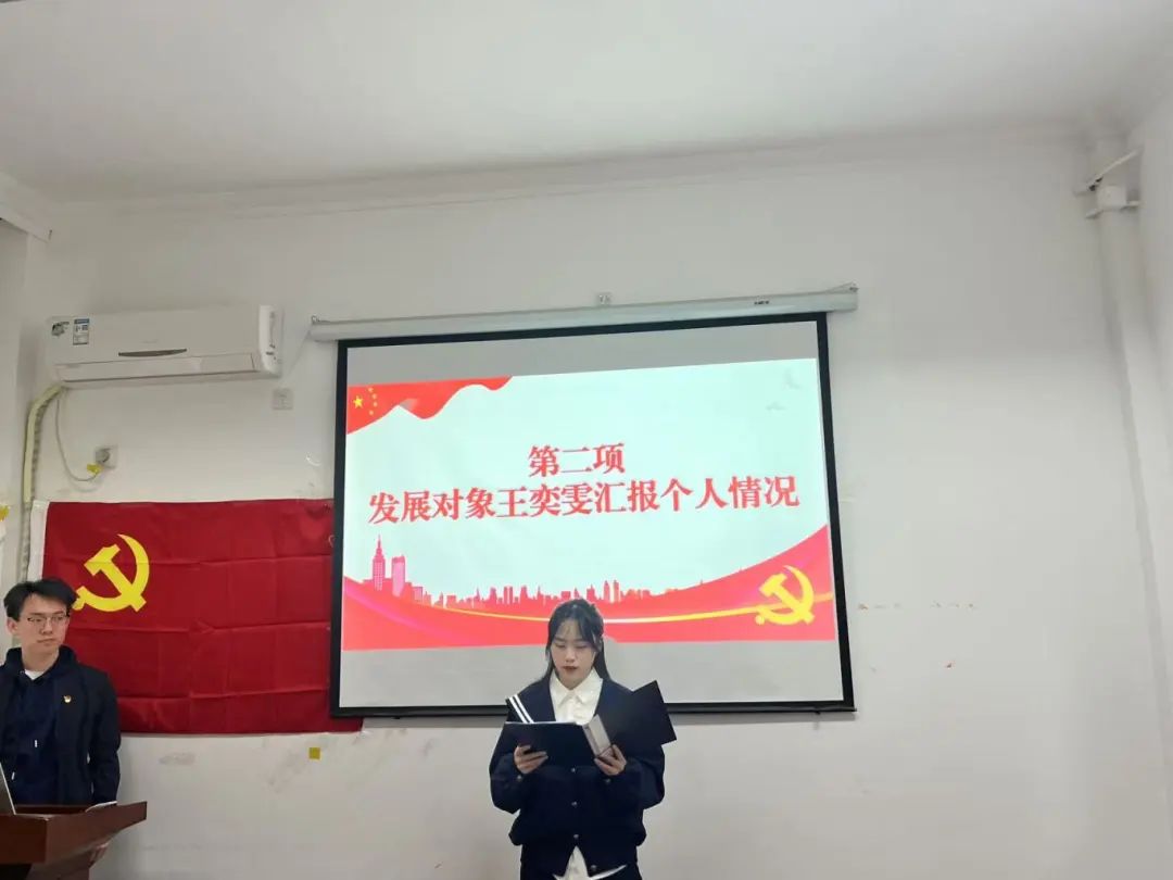 2024年10月17日下午,太阳成集团官方网站笃行党支部在生地楼129召开了党员发展大会,讨论王奕雯与许佳钰两位同志的发展问题,会议由贾康宁同志主持,笃行党支部指导老师席超老师以及崇德党支部学生组织员翟桉迪同志出席会议,笃行党支部全体党员参会。