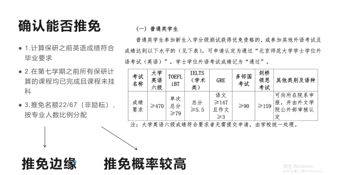 他们凭借不懈的努力和亮眼的成绩,成功拿到了自己的推免offer,在这次会议中为大家分享了自己宝贵的经验,令大家受益匪浅。 第一位分享的是保研至清华大学的马瑞馨师兄。他从保研推免的政策入手,一并介绍了保研机会的把握,简历和面试的准备等。从推免政策的基础要求到进阶能力的锻炼,让大家对保研有了全面的、深刻的了解。