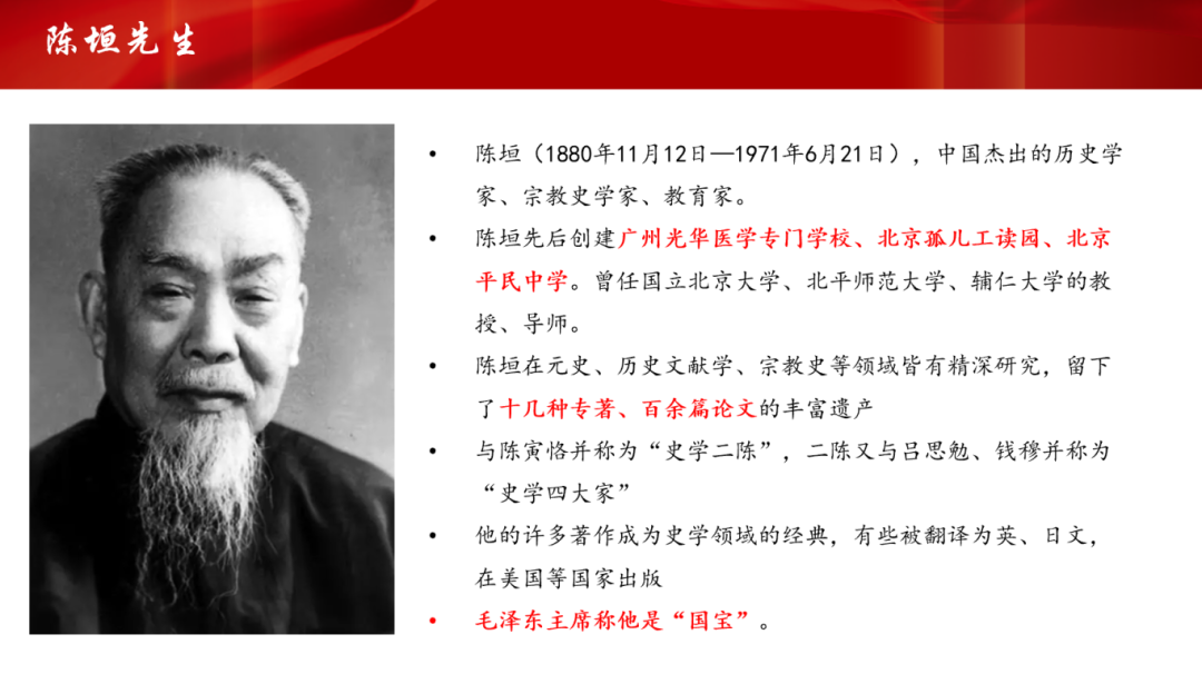本次我们学习的是教育大家、史学泰斗——陈垣先生。作为一个师大人,我从一入校便听闻先生大名,但是今天的活动让我对先生的生平经历有了许多意料之外的了解。作为一个生科人,我没想到陈垣先生出生中药商家,早年曾有医学学习甚至开办国内第一所民办医学高校的创举,先生在教授医学时不拘一格的教学风格让我联想起生科院的教授前辈们。而作为一个“励耘”人,我本就是励耘书院的学生,入校三年,只知“励耘”好似源自陈垣先生的书屋名,却不知这是他父亲的字。励志耕耘,是先生一生治学教育的写照,也是对我们后辈的殷殷期盼。每一个真实的人都是有血有肉的,本次学习我也了解到陈垣先生除了文理兼备外,还曾创办期刊、参与政治,最终在理想与现实间找到平衡,潜心从事史学研究,而无论先生在哪些方面进行尝试,其背后都是心系家国百姓,不变初衷,这对于我们进行面临人生选择颇具启发意义。总之,先生之风永留师大,希望我们都能传承先生的志向,切实担起师大学子的职责与使命。