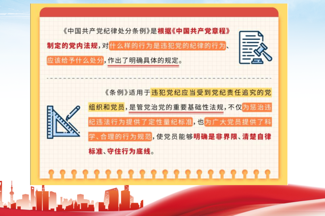进行党纪学习主题教育。吴峰同志领学《中国共产党纪律处分条例》,强调了修订要点。希望毕业生党员能够系统的学习和贯彻《条例》,深入思考,融会贯通,在未来工作和生活中知行合一,不断增强政治定力、纪律定力、道德定力、抵腐定力,始终做到忠诚干净担当,为强国建设、民族复兴提供坚强纪律保障。
