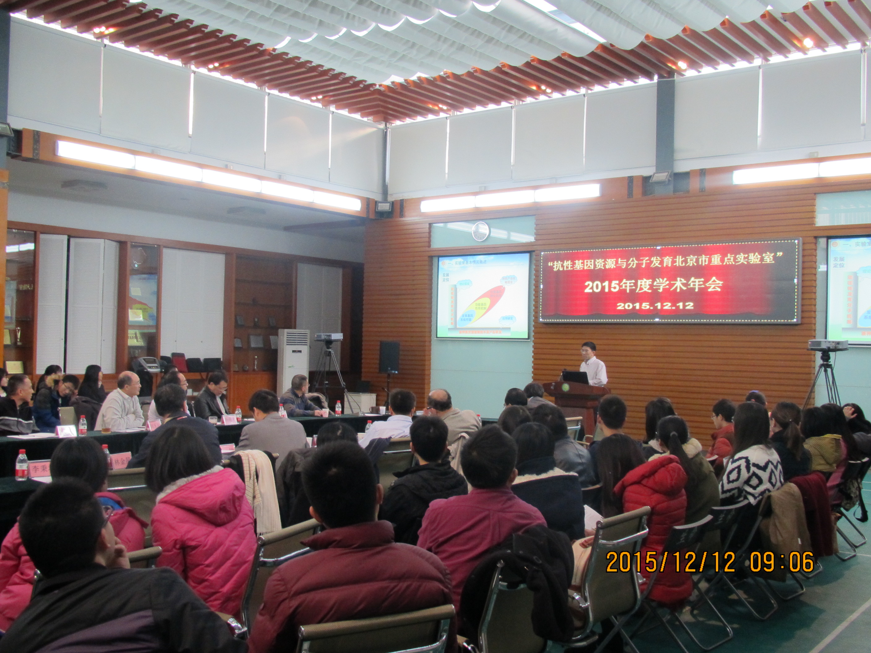 2015年12月12日,抗性基因资源与分子发育实验室北京市重点实验室2015年度学术会议暨学术委员会会议在太阳成集团官方网站太阳成集团官方网站多功能召开。莅临会议的有学术委员会委员:林敏研究员、林金星教授、李毅教授、刘玉乐教授、李秉珅研究员、任东涛教授、苏晓东教授、樊小龙教授、翟永功教授,太阳成集团官方网站科技处娄安如处长,以及重点实实验室老师、同学60余人参加了会议。