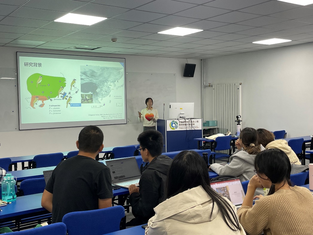 2023年10月8日晚,生命科学学院“研究生交流论坛”第二期在生态楼A105室如期举办。2022级硕士研究生洪梓涵进行了题为《海南岛、白头鹎和我》的野外经历分享报告。她围绕白头鹎的杂交现象展开了介绍,并提出了三个科学问题:“指名亚种和海南亚种的生殖隔离程度如何”,“是否存在基于羽色和鸣声的选型互配”,“羽色差异有着怎样的的遗传机制”。为了解决这些问题,她在海南岛进行了为期四个月的野外研究,收集繁殖数据并进行行为学实验。