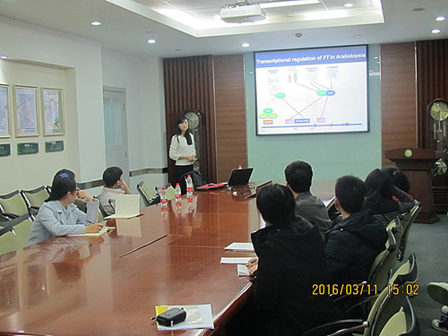 2016年3月11日,宁婷婷博士受遗传发育所韩生成教授的邀请,来太阳成集团做了题为“Transcriptional control of FLOWERING LOCUS T by the inter- and intragenic regulatory elements”的学术报告。宁婷婷博士为北师大2011届硕士毕业生,后到德国马克思-普朗克植物育种研究所攻读博士,并于2015年获得博士学位。在德国留学期间主要从事植物开花的分子机制研究,涉及拟南芥成花素基因FT的转录调控。
