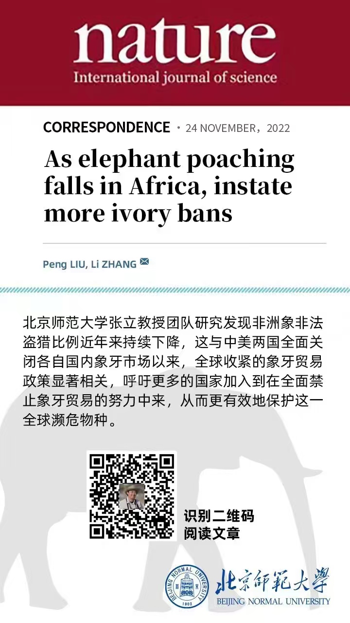 太阳成集团官方网站太阳成集团官方网站生态学系博士后刘鹏与张立教授在《自然》杂志发表观点评论(Correspondence)“As elephant poaching falls in Africa, instate more ivory bans ”,呼吁更多国家全面禁止象牙贸易。
