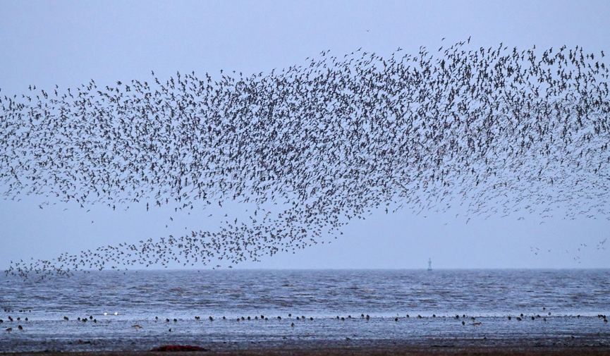 图1 渤海湾滩涂湿地的迁徙水鸟集群(郑文忠摄)